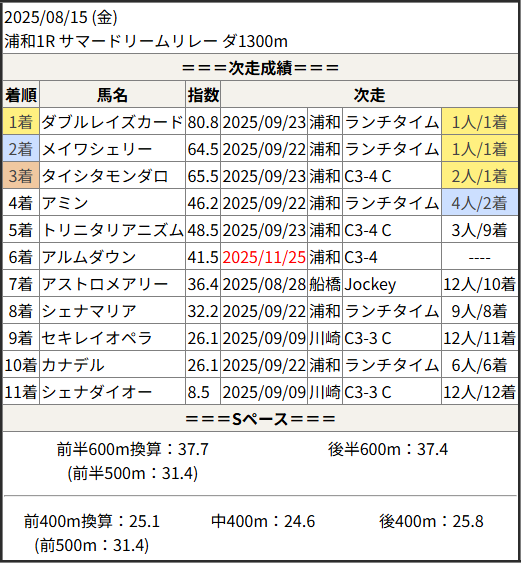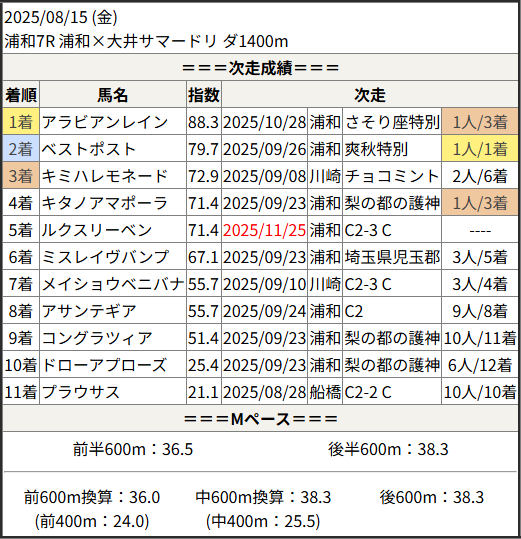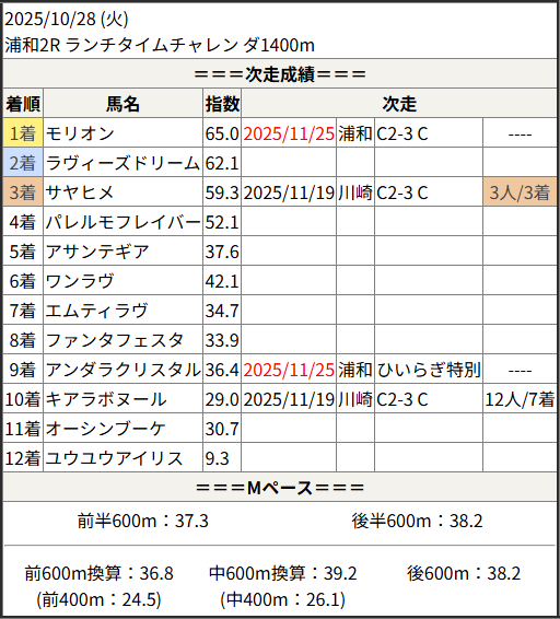 2025/11/25 浦和2R ランチタイムチャレン:結果