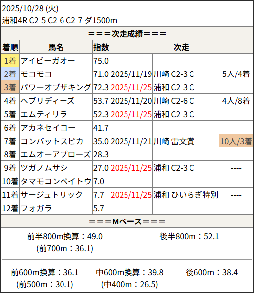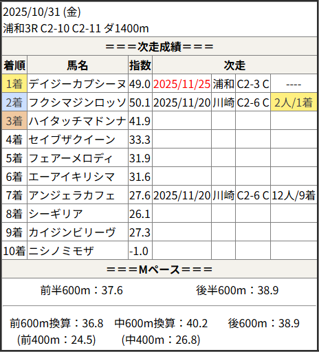 2025/11/25 浦和6R C2-3 C2-4:結果
