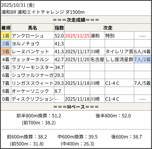 2025/11/25 浦和1R 浦和800ラウンド:結果