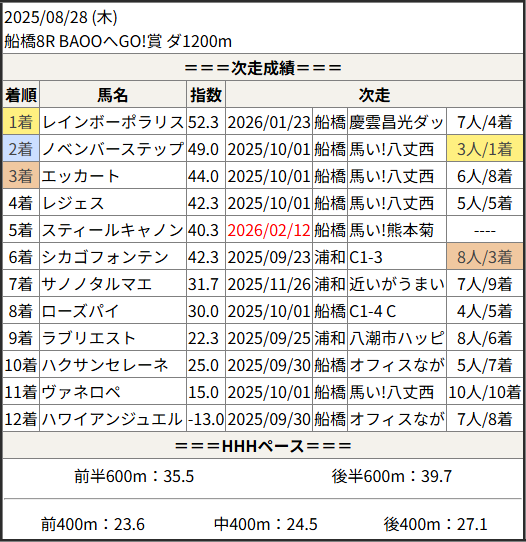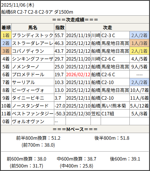 2026/02/12 船橋8R 馬い!熊本菊池水田ご:結果