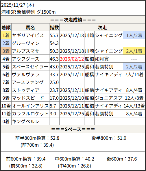 今回のメンバー相手に通用するかは、スピード指数表と合わせてご覧下さい。