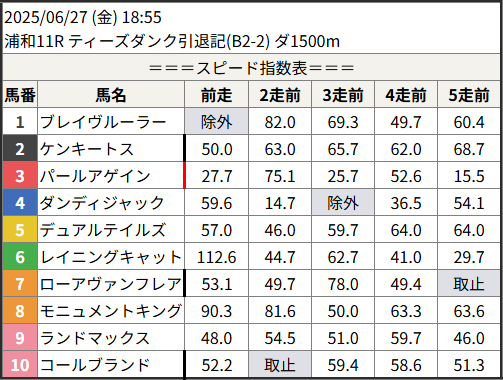 Home / 予想データ / 2025/06/27 スピード指数表スピード指数予想データ2025/06/27 スピード指数表による shunrai コメントはまだありません2025年6月27日 00:00 ※見解・買い目はこちらを参照ください。 浦和 名古屋 園田 共有: クリックして X で共有 (新しいウィンドウで開きます) X クリックして友達にメールでリンクを送信 (新しいウィンドウで開きます) メールアドレス Facebook で共有するにはクリックしてください (新しいウィンドウで開きます) Facebook いいね:いいね 読み込み中…Share ArticlePrevious Article2025/6/26 佐賀12R 16,400円Next Article2025/06/27 次走好走馬の目立つ組出身shunraiRelated Posts 2025/11/15 スピード指数表 2025年11月14日 2025/11/14 スピード指数表 2025年11月13日 2025/11/13 スピード指数表 2025年11月12日コメントを残す コメントをキャンセルメールアドレスが公開されることはありません。 ※ が付いている欄は必須項目ですコメント名前 メール サイト 次回のコメントで使用するためブラウザーに自分の名前、メールアドレス、サイトを保存する。 Δ