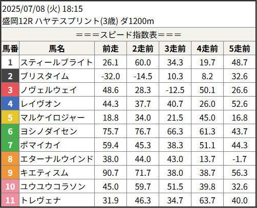 Home / 予想データ / 2025/07/08 スピード指数表スピード指数予想データ2025/07/08 スピード指数表による shunrai コメントはまだありません2025年7月8日 00:00 ※見解・買い目はこちらを参照ください。 門別 盛岡 川崎 金沢 名古屋 共有: クリックして X で共有 (新しいウィンドウで開きます) X クリックして友達にメールでリンクを送信 (新しいウィンドウで開きます) メールアドレス Facebook で共有するにはクリックしてください (新しいウィンドウで開きます) Facebook いいね:いいね 読み込み中…Share ArticlePrevious Article2025/07/07 次走好走馬の目立つ組出身Next Article2025/07/08 次走好走馬の目立つ組出身shunraiRelated Posts 2025/11/15 スピード指数表 2025年11月14日 2025/11/14 スピード指数表 2025年11月13日 2025/11/13 スピード指数表 2025年11月12日コメントを残す コメントをキャンセルメールアドレスが公開されることはありません。 ※ が付いている欄は必須項目ですコメント名前 メール サイト 次回のコメントで使用するためブラウザーに自分の名前、メールアドレス、サイトを保存する。 Δ
