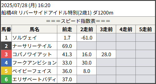 2025/07/28 スピード指数表