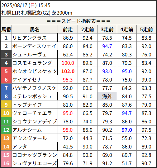 Home / 予想データ / 2025/08/17 スピード指数表スピード指数予想データ2025/08/17 スピード指数表による shunrai コメントはまだありません2025年8月16日 17:34 ※見解・買い目はこちらを参照ください。 札幌 新潟 中京 盛岡 佐賀 共有: クリックして X で共有 (新しいウィンドウで開きます) X クリックして友達にメールでリンクを送信 (新しいウィンドウで開きます) メールアドレス Facebook で共有するにはクリックしてください (新しいウィンドウで開きます) Facebook いいね:いいね 読み込み中…Share ArticlePrevious Article2025/8/15 笠松5R 34,000円Next Article2025/8/16 中京5R 単勝・複勝◎ 47,600円🎯shunraiRelated Posts 2025/11/15 スピード指数表 2025年11月14日 2025/11/14 スピード指数表 2025年11月13日 2025/11/13 スピード指数表 2025年11月12日コメントを残す コメントをキャンセルメールアドレスが公開されることはありません。 ※ が付いている欄は必須項目ですコメント名前 メール サイト 次回のコメントで使用するためブラウザーに自分の名前、メールアドレス、サイトを保存する。 Δ
