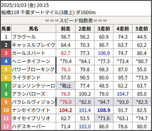Home / 予想データ / 2025/10/03 スピード指数表スピード指数予想データ2025/10/03 スピード指数表による shunrai コメントはまだありません2025年10月3日 03:33 ※見解・買い目はこちらを参照ください。 船橋 名古屋 園田 共有: クリックして X で共有 (新しいウィンドウで開きます) X クリックして友達にメールでリンクを送信 (新しいウィンドウで開きます) メールアドレス Facebook で共有するにはクリックしてください (新しいウィンドウで開きます) Facebook いいね:いいね 読み込み中…Share ArticlePrevious Article2025/10/02 次走好走馬の目立つ組出身Next Article2025/10/03 次走好走馬の目立つ組出身shunraiRelated Posts 2025/11/15 スピード指数表 2025年11月14日 2025/11/14 スピード指数表 2025年11月13日 2025/11/13 スピード指数表 2025年11月12日コメントを残す コメントをキャンセルメールアドレスが公開されることはありません。 ※ が付いている欄は必須項目ですコメント名前 メール サイト 次回のコメントで使用するためブラウザーに自分の名前、メールアドレス、サイトを保存する。 Δ