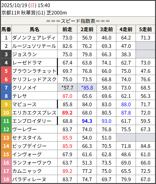 Home / 予想データ / 2025/10/19 スピード指数表スピード指数予想データ2025/10/19 スピード指数表による shunrai コメントはまだありません2025年10月19日 00:00 ※見解・買い目はこちらを参照ください。 新潟 東京 京都 盛岡 金沢 高知 佐賀 共有: クリックして X で共有 (新しいウィンドウで開きます) X クリックして友達にメールでリンクを送信 (新しいウィンドウで開きます) メールアドレス Facebook で共有するにはクリックしてください (新しいウィンドウで開きます) Facebook いいね:いいね 読み込み中…Share ArticlePrevious Article2025/10/18 高知ファイナル 3連単注◎▲ 10,000円🎯Next Article2025/10/19 東京7R 馬連○◎ 36,000円🎯shunraiRelated Posts 2025/11/15 スピード指数表 2025年11月14日 2025/11/14 スピード指数表 2025年11月13日 2025/11/13 スピード指数表 2025年11月12日コメントを残す コメントをキャンセルメールアドレスが公開されることはありません。 ※ が付いている欄は必須項目ですコメント名前 メール サイト 次回のコメントで使用するためブラウザーに自分の名前、メールアドレス、サイトを保存する。 Δ