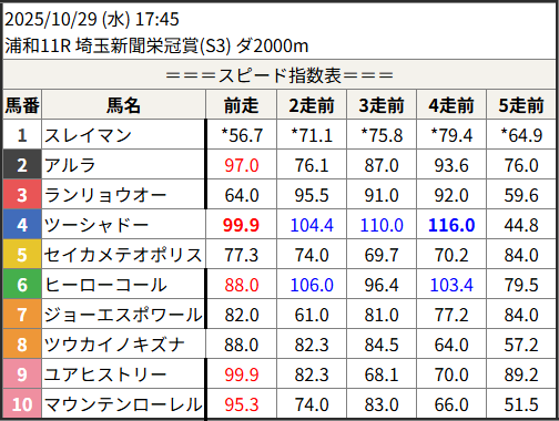 Home / 予想データ / 2025/10/29 スピード指数表スピード指数予想データ2025/10/29 スピード指数表による shunrai コメントはまだありません2025年10月28日 19:12 ※見解・買い目はこちらを参照ください。 門別 浦和 名古屋 園田 共有: クリックして X で共有 (新しいウィンドウで開きます) X クリックして友達にメールでリンクを送信 (新しいウィンドウで開きます) メールアドレス Facebook で共有するにはクリックしてください (新しいウィンドウで開きます) Facebook いいね:いいね 読み込み中…Share ArticlePrevious Article2025/10/28 門別8R 3連複・3連単◎☆注 12,110円🎯Next Article2025/10/29 次走好走馬の目立つ組出身shunraiRelated Posts 2025/11/15 スピード指数表 2025年11月14日 2025/11/14 スピード指数表 2025年11月13日 2025/11/13 スピード指数表 2025年11月12日コメントを残す コメントをキャンセルメールアドレスが公開されることはありません。 ※ が付いている欄は必須項目ですコメント名前 メール サイト 次回のコメントで使用するためブラウザーに自分の名前、メールアドレス、サイトを保存する。 Δ