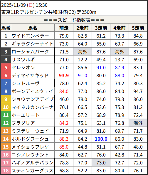 Home / 予想データ / 2025/11/09 スピード指数表スピード指数予想データ2025/11/09 スピード指数表による shunrai コメントはまだありません2025年11月8日 19:18 ※見解・買い目はこちらを参照ください。 福島 東京 京都 金沢 高知 佐賀 共有: クリックして X で共有 (新しいウィンドウで開きます) X クリックして友達にメールでリンクを送信 (新しいウィンドウで開きます) メールアドレス Facebook で共有するにはクリックしてください (新しいウィンドウで開きます) Facebook いいね:いいね 読み込み中…Share ArticlePrevious Article2025/11/08 福島6R 複勝 11,500円🎯Next Article2025/11/09 次走好走馬の目立つ組出身shunraiRelated Posts 2025/11/15 スピード指数表 2025年11月14日 2025/11/14 スピード指数表 2025年11月13日 2025/11/13 スピード指数表 2025年11月12日コメントを残す コメントをキャンセルメールアドレスが公開されることはありません。 ※ が付いている欄は必須項目ですコメント名前 メール サイト 次回のコメントで使用するためブラウザーに自分の名前、メールアドレス、サイトを保存する。 Δ