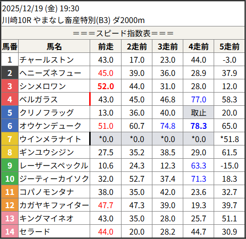 Home / 予想データ / 2025/12/19 スピード指数表スピード指数予想データ2025/12/19 スピード指数表による shunrai コメントはまだありません2025年12月18日 20:34 ※見解・買い目はこちらを参照ください。 川崎 金沢 名古屋 共有: クリックして X で共有 (新しいウィンドウで開きます) X クリックして友達にメールでリンクを送信 (新しいウィンドウで開きます) メールアドレス Facebook で共有するにはクリックしてください (新しいウィンドウで開きます) Facebook いいね:いいね 読み込み中…Share ArticlePrevious Article2025/12/18 次走好走馬の目立つ組出身Next Article2025/12/19 次走好走馬の目立つ組出身shunraiRelated Posts 2025/12/29 スピード指数表 2025年12月28日 2025/12/28 スピード指数表 2025年12月27日 2025/12/27 スピード指数表 2025年12月26日コメントを残す コメントをキャンセルメールアドレスが公開されることはありません。 ※ が付いている欄は必須項目ですコメント名前 メール サイト 次回のコメントで使用するためブラウザーに自分の名前、メールアドレス、サイトを保存する。 Δ