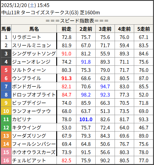 Home / 予想データ / 2025/12/20 スピード指数表スピード指数予想データ2025/12/20 スピード指数表による shunrai コメントはまだありません2025年12月19日 23:40 ※見解・買い目はこちらを参照ください。 中山 中京 阪神 高知 佐賀 共有: クリックして X で共有 (新しいウィンドウで開きます) X クリックして友達にメールでリンクを送信 (新しいウィンドウで開きます) メールアドレス Facebook で共有するにはクリックしてください (新しいウィンドウで開きます) Facebook いいね:いいね 読み込み中…Share ArticlePrevious Article2025/12/19 次走好走馬の目立つ組出身Next Article2025/12/20 次走好走馬の目立つ組出身shunraiRelated Posts 2025/12/29 スピード指数表 2025年12月28日 2025/12/28 スピード指数表 2025年12月27日 2025/12/27 スピード指数表 2025年12月26日コメントを残す コメントをキャンセルメールアドレスが公開されることはありません。 ※ が付いている欄は必須項目ですコメント名前 メール サイト 次回のコメントで使用するためブラウザーに自分の名前、メールアドレス、サイトを保存する。 Δ