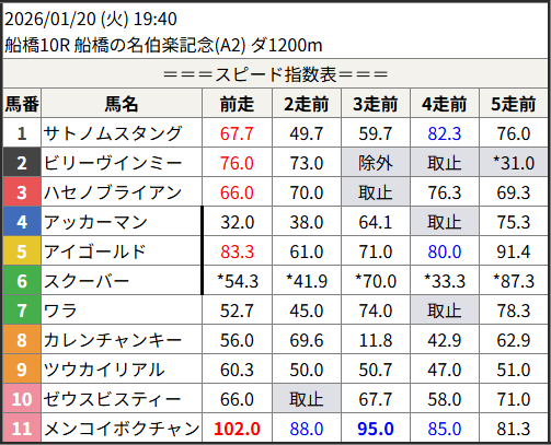 Home / 予想データ / 2026/01/20 スピード指数表スピード指数予想データ2026/01/20 スピード指数表による shunrai コメントはまだありません2026年1月19日 18:31 ※見解・買い目はこちらを参照ください。 船橋 笠松 姫路 高知 共有: X で共有 (新しいウィンドウで開きます) X 友達にメールでリンクを送信 (新しいウィンドウで開きます) メールアドレス Facebook で共有 (新しいウィンドウで開きます) Facebook いいね:いいね 読み込み中…Share ArticlePrevious Article2026/01/19 次走好走馬の目立つ組出身Next Article2026/01/20 次走好走馬の目立つ組出身shunraiRelated Posts 2026/02/13 スピード指数表 2026年2月12日 2026/02/12 スピード指数表 2026年2月12日 2026/02/11 スピード指数表 2026年2月11日コメントを残す コメントをキャンセルメールアドレスが公開されることはありません。 ※ が付いている欄は必須項目ですコメント名前 メール サイト 次回のコメントで使用するためブラウザーに自分の名前、メールアドレス、サイトを保存する。 Δ