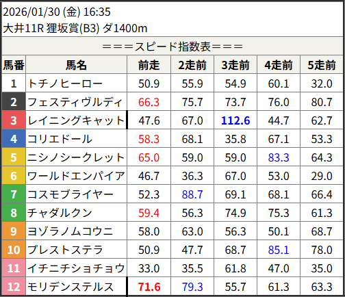 Home / 予想データ / 2026/01/30 スピード指数表スピード指数予想データ2026/01/30 スピード指数表による shunrai コメントはまだありません2026年1月29日 18:44 ※見解・買い目はこちらを参照ください。 大井 名古屋 共有: X で共有 (新しいウィンドウで開きます) X 友達にメールでリンクを送信 (新しいウィンドウで開きます) メールアドレス Facebook で共有 (新しいウィンドウで開きます) Facebook いいね:いいね 読み込み中…Share ArticlePrevious Article2026/01/29 次走好走馬の目立つ組出身Next Article2026/01/30 次走好走馬の目立つ組出身shunraiRelated Posts 2026/02/13 スピード指数表 2026年2月12日 2026/02/12 スピード指数表 2026年2月12日 2026/02/11 スピード指数表 2026年2月11日コメントを残す コメントをキャンセルメールアドレスが公開されることはありません。 ※ が付いている欄は必須項目ですコメント名前 メール サイト 次回のコメントで使用するためブラウザーに自分の名前、メールアドレス、サイトを保存する。 Δ