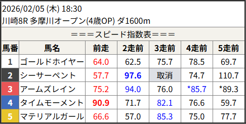 Home / 予想データ / 2026/02/05 スピード指数表スピード指数予想データ2026/02/05 スピード指数表による shunrai コメントはまだありません2026年2月4日 19:41 ※見解・買い目はこちらを参照ください。 川崎 笠松 姫路 共有: クリックして X で共有 (新しいウィンドウで開きます) X クリックして友達にメールでリンクを送信 (新しいウィンドウで開きます) メールアドレス Facebook で共有するにはクリックしてください (新しいウィンドウで開きます) Facebook いいね:いいね 読み込み中…Share ArticlePrevious Article2026/02/04 次走好走馬の目立つ組出身shunraiRelated Posts 2026/02/04 スピード指数表 2026年2月3日 2026/02/03 スピード指数表 2026年2月2日 2026/02/02 スピード指数表 2026年2月2日コメントを残す コメントをキャンセルメールアドレスが公開されることはありません。 ※ が付いている欄は必須項目ですコメント名前 メール サイト 次回のコメントで使用するためブラウザーに自分の名前、メールアドレス、サイトを保存する。 Δ
