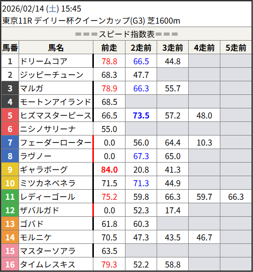 Home / 予想データ / 2026/02/14 スピード指数表スピード指数予想データ2026/02/14 スピード指数表による shunrai コメントはまだありません2026年2月14日 18:49 ※見解・買い目はこちらを参照ください。 東京 京都 小倉 佐賀 共有: X で共有 (新しいウィンドウで開きます) X 友達にメールでリンクを送信 (新しいウィンドウで開きます) メールアドレス Facebook で共有 (新しいウィンドウで開きます) Facebook いいね:いいね 読み込み中…Share ArticlePrevious Article2026/02/14 スピード指数表shunraiRelated Posts 2026/02/14 スピード指数表 2026年2月13日 2026/02/13 スピード指数表 2026年2月12日 2026/02/12 スピード指数表 2026年2月12日コメントを残す コメントをキャンセルメールアドレスが公開されることはありません。 ※ が付いている欄は必須項目ですコメント名前 メール サイト 次回のコメントで使用するためブラウザーに自分の名前、メールアドレス、サイトを保存する。 Δ