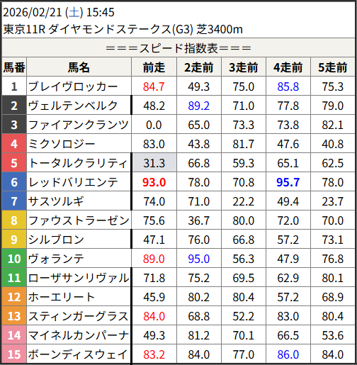 2026/02/21 スピード指数表
